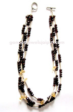 Garnet, Citrine Semi Precious Beaded Silver Necklace